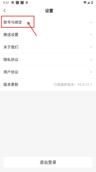 3、在设置界面,点击账号与绑定选项,进入账号绑定管理页。