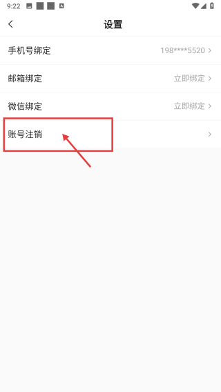 4、在账号绑定管理页,点击账号注销选项,启动账号注销流程。