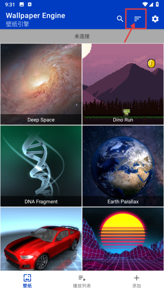 1、打开Wallpaper-Engine-APP,点击顶部排序图标,展开排序选项菜单。