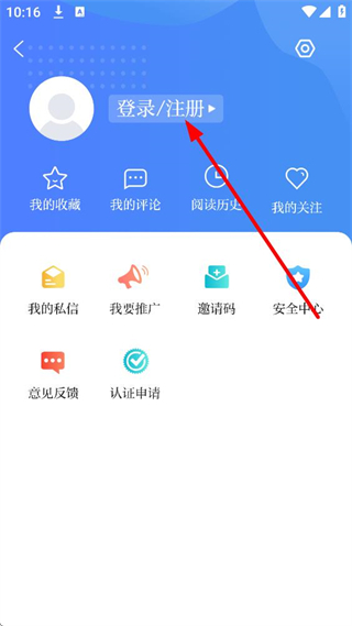 2、在个人页面,点击登录/注册,进入登录选择页面。