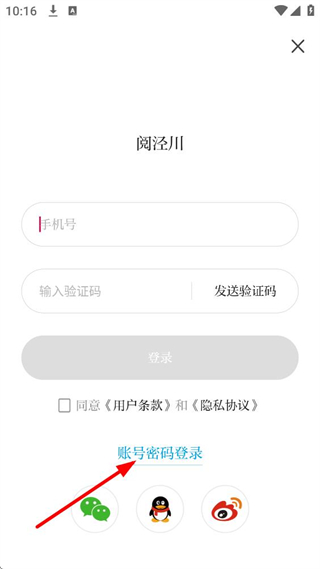 3、在登录选择页面,点击账号密码登录,进入账号密码登录页面。