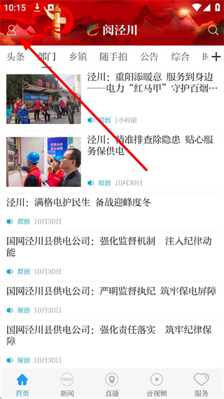 设置首页新闻直播音视频服务五大板块15个子栏目,功能分类清晰明确,从信息获取到便民服务一站式覆盖,无需切换即可满足使用需求,操作逻辑顺畅。