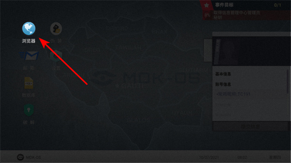 4、点击浏览器图标,可进入网络浏览界面,开展黑客技能相关的操作,收集调查所需的信息,推进任务进程。