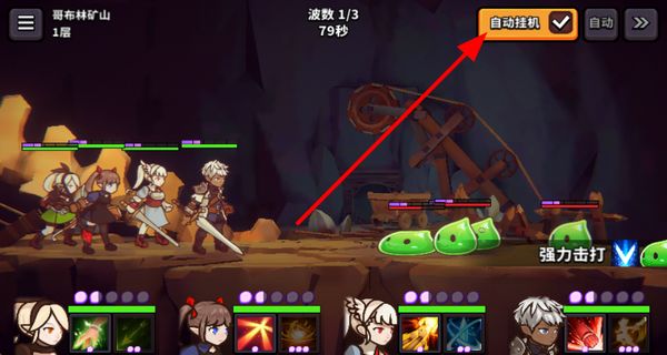 1、开启自动挂机功能,角色在哥布林矿山等场景自动参与战斗,无需手动操作,轻松推进游戏进程,还能节省时间。