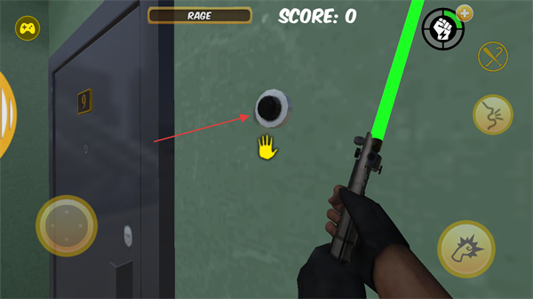 2、拾取光剑后,靠近门的猫眼处,点击交互进入邻居区域。