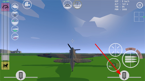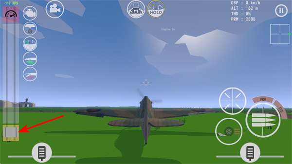 1、在飞机驾驶界面,操控右侧的油门按键,可控制飞机的动力输出,调整飞机的速度,为起飞和飞行操作提供动力支持。