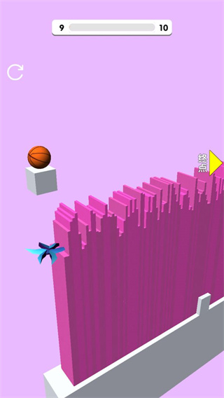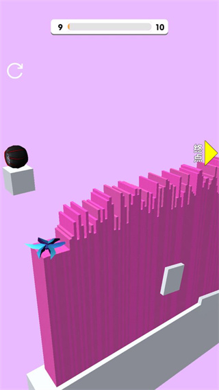 2、操控切片工具切割粉色障碍物,降低其高度,推进关卡进度,注意躲避白色方块等障碍物。