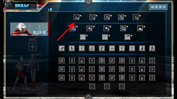 2、进入技能界面,点击技能图标可学习和升级技能,通过提升技能等级增强奥特曼的战斗力,为后续战斗做好技能储备。