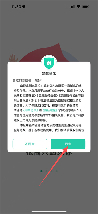 1、在温馨提示弹窗中,点击同意继续,进入首页。