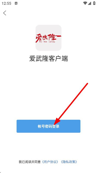 2、在登录方式选择页面,点击帐号密码登录,进入账号密码登录界面。