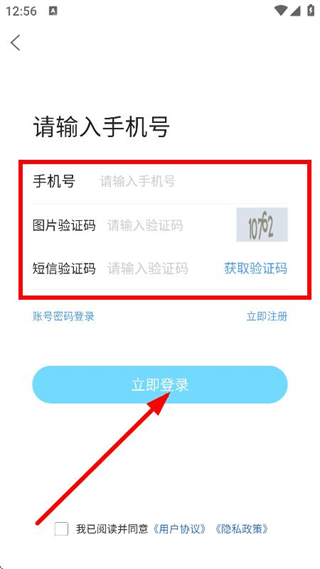 4、输入手机号、图片验证码,随后输入验证码,点击立即登录,完成账号登录操作。