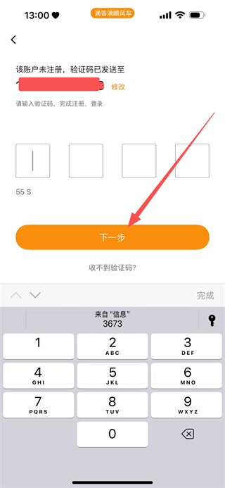 3、在验证码输入页面,输入短信验证码后点击下一步。
