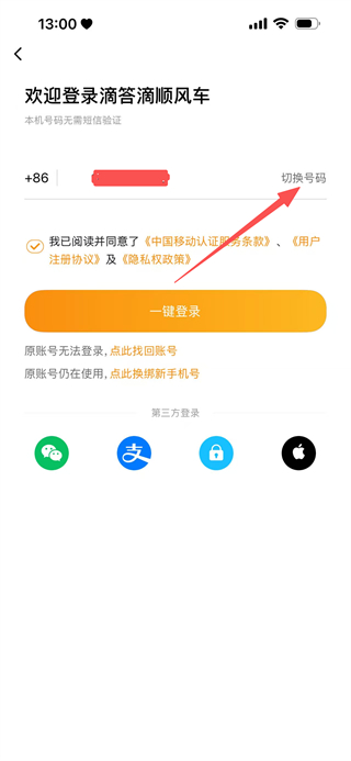 5、最后在登录页面,点击切换号码,可切换手机号进行登录操作。