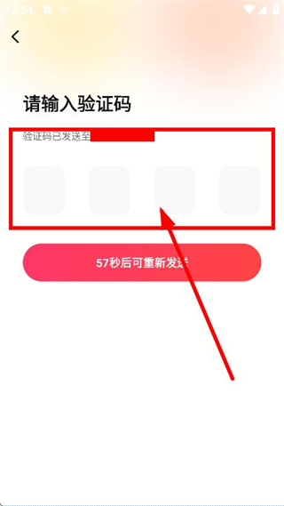 4、在验证码输入页面,输入短信验证码,完成账号登录操作。