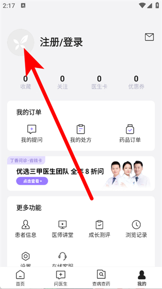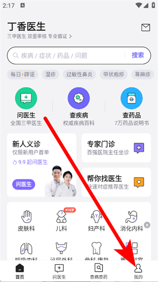1、打开丁香医生,点击底部导航栏我的,进入个人页面。