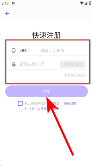 4、输入手机号码,点击获取验证码并输入收到的短信验证码,勾选后,点击注册按钮,完成注册。