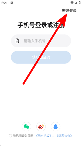 1、打开okok体脂秤,在登录页面,点击密码登录。