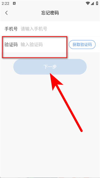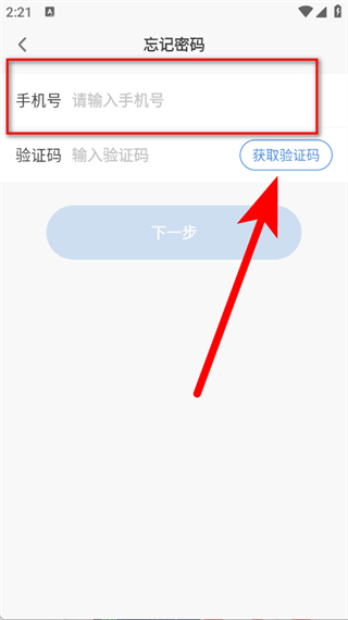 3、进入密码页面,输入手机号码,点击获取验证码。