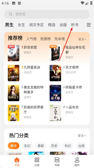 1、打开多看,若想听书,在首页点击听书,进入听书频道页面。
