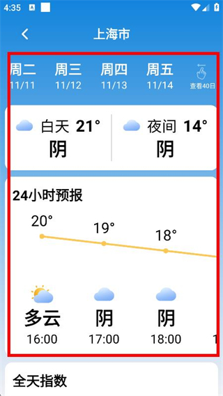 从短时24小时逐时预报到中期15日详细预报,再到长期40日趋势预测,全周期覆盖满足多元需求,无论是日常出行还是长期规划都能找到对应气象参考。