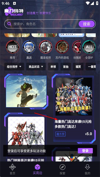汇聚海量二次元谷子、热门IP盲盒、手办模型等潮玩品类,涵盖日系、国创等多个热门动漫IP,每周持续上新,满足不同爱好者的收藏与购买需求。