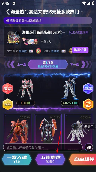 4、在周边详情页面,可选择五连绝世方式参与抽奖购买。