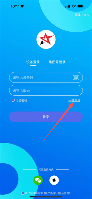 2、在登录页面,点击一键登录,进入登录方式选择页面。