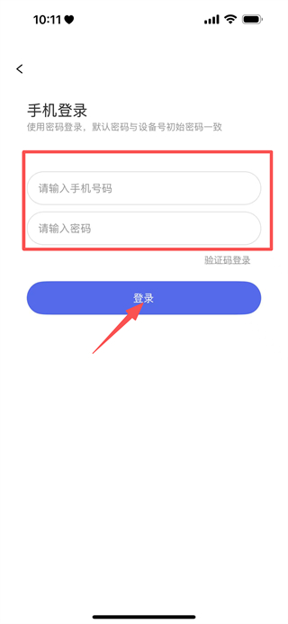 4、在手机登录页面,输入手机号码和密码后,点击登录,完成账号登录操作。