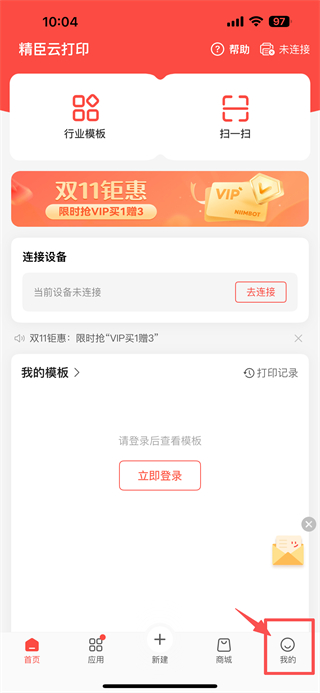 1、打开打印服务类APP首页,点击底部我的选项,进入个人中心页面。