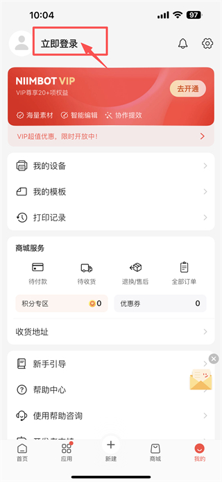 2、在个人中心,点击立即登录选项,进入登录方式选择页面。