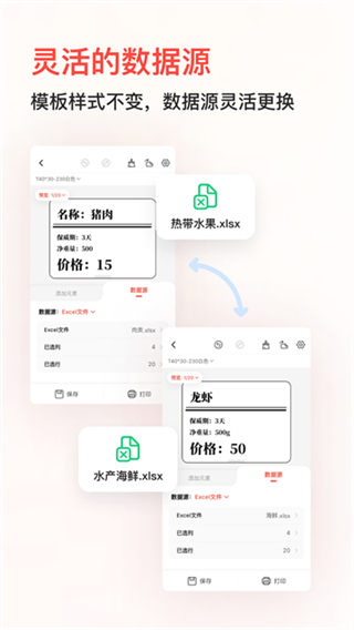 拥有功能强大的编辑模板,支持文本编辑、字体选择、自由缩放、内容导入、旋转对齐、图表插入等操作,让用户能灵活制作个性化标签。