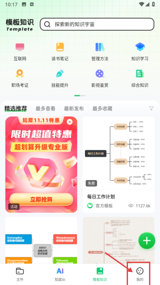 1、打开思维导图类APP首页,点击底部我的选项,进入个人中心页面。