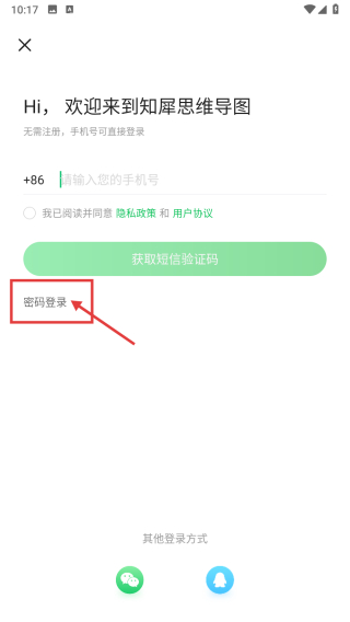 3、在登录方式选择页面,点击密码登录选项,进入账号密码登录信息填写页面。