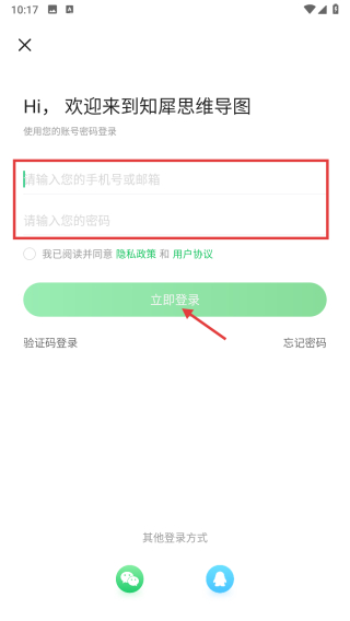 4、在账号密码登录页面,填写手机号或邮箱、密码,勾选同意隐私政策用户协议后,点击立即登录按钮,完成账号登录操作。