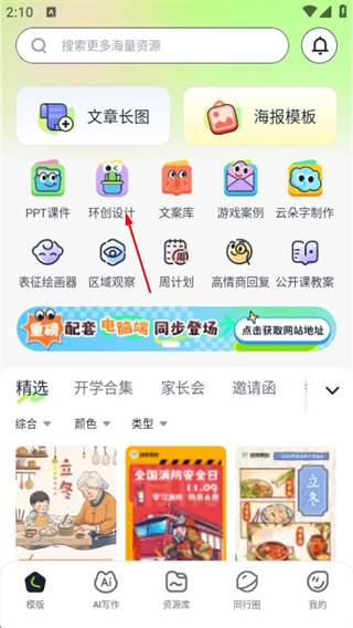 1、打开幼师易创,在首页点击环创设计,进入环创设计页面。