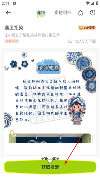 3、在主题详情页面,点击获取资源,若未登录则进入登录页面。