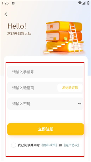 4、在注册页面,输入信息,同意协议后点击立即注册,完成账号注册。