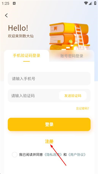 3、在登录注册页面,若需注册则点击注册,进入注册页面。