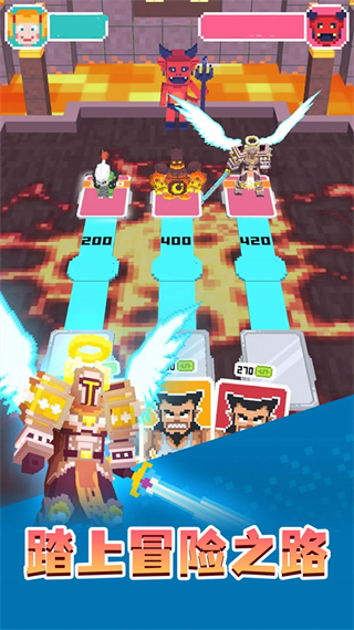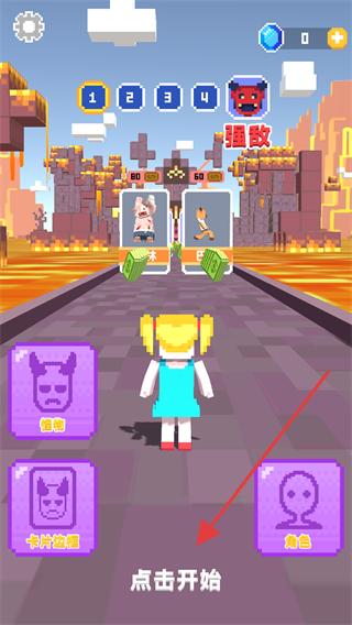 1、游戏首页可以查看怪物,修改卡牌边框和角色样式,点击屏幕中间空白区域开始关卡挑战。