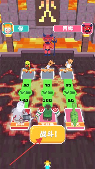 3、在最终BOSS关需要使用前面收集到的怪兽进行排兵布阵,使3个线路均能击败boss。