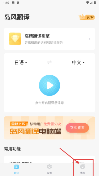 1、打开翻译类APP首页,点击底部我的选项,进入个人中心页面。