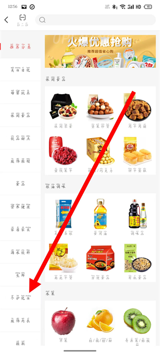2、在商品分类,找到个护化妆分类,点击进入水果类目。