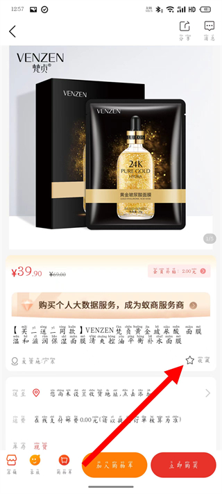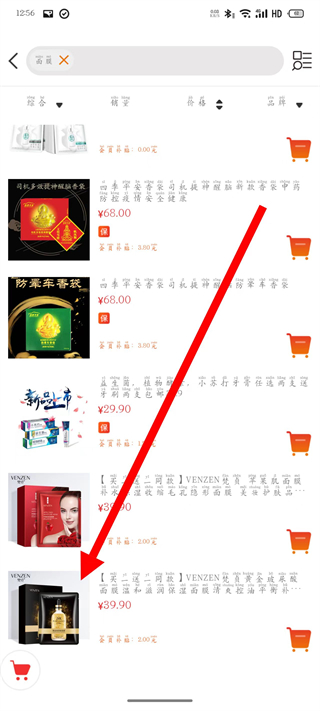 4、在面膜商品列表中,点击目标商品,进入详情页。