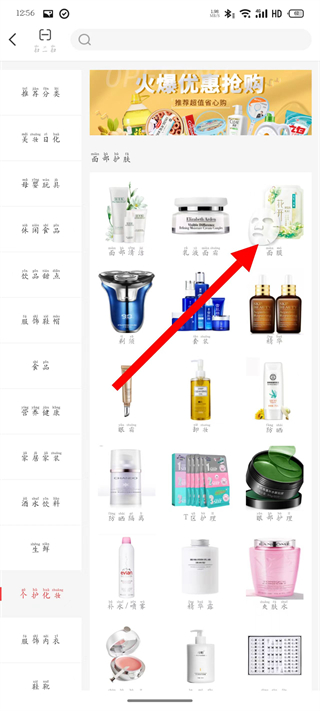 3、在个护化妆分类,选择面膜类目,进入列表。