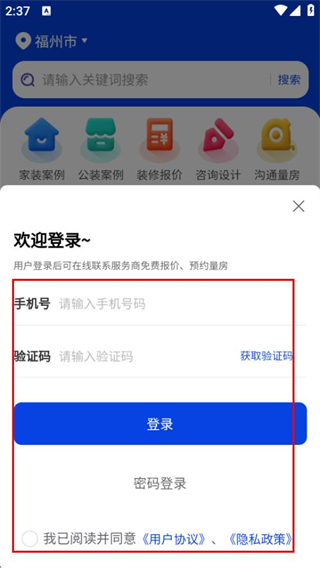3、在验证码登录页面,输入信息,同意协议后点击登录,完成账号登录。