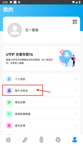 2、在个人中心,点击账户与安全选项,进入账户与安全页面。