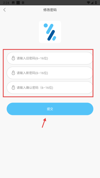 4、在修改密码信息填写页面,输入旧密码、新密码及确认密码后,点击提交按钮,完成密码修改操作。