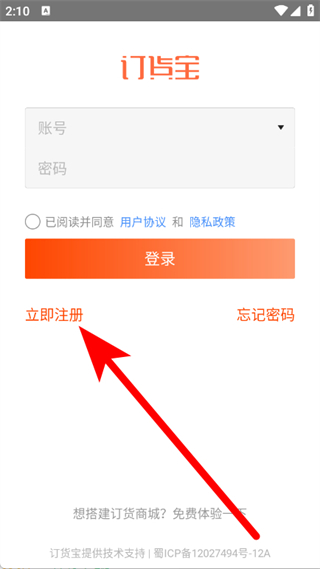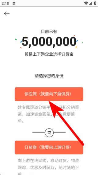 1、打开订货宝,点击立即注册,进入身份选择页面。