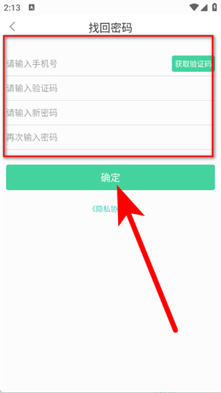 4、输入手机号码,点击获取验证码,输入后设置新密码并再次确认,点击确定,完成密码重置。