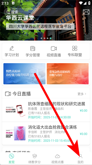 1、打开华西云课堂,点击底部我的,进入登录页面。